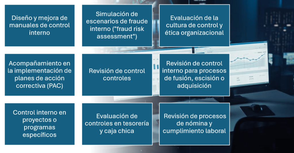 Nuestro enfoque en control interno se basa en los principios de eficiencia operativa, confiabilidad de la información financiera, cumplimiento normativo y salvaguarda de activos.